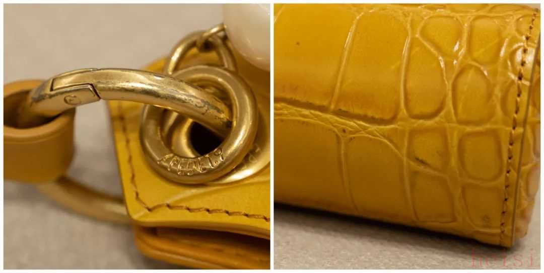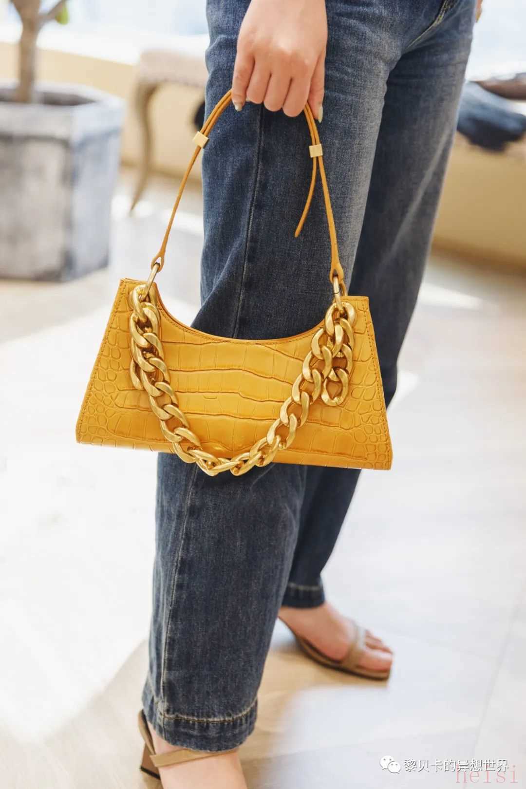 我这只实物偏姜黄,配上鳄鱼压纹非常复古,上镜特别好看。大小对哈比人来说刚刚好,可手拎、可肩背。▼