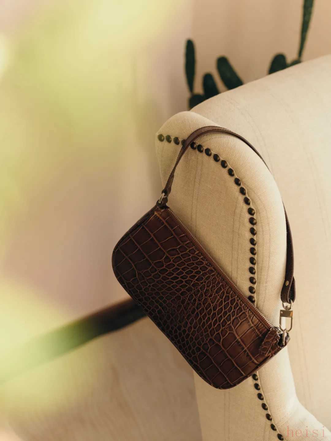 很多人觉得腋下包比较适合春夏,因为一到秋冬穿得厚,肩带短又不能调节的腋下包背着可能会不舒服。这款肩带长度是可以调节的,利用率会高一些。要提醒的是,相比起光面,鳄鱼压纹的肩带有点硬,不是很好调。