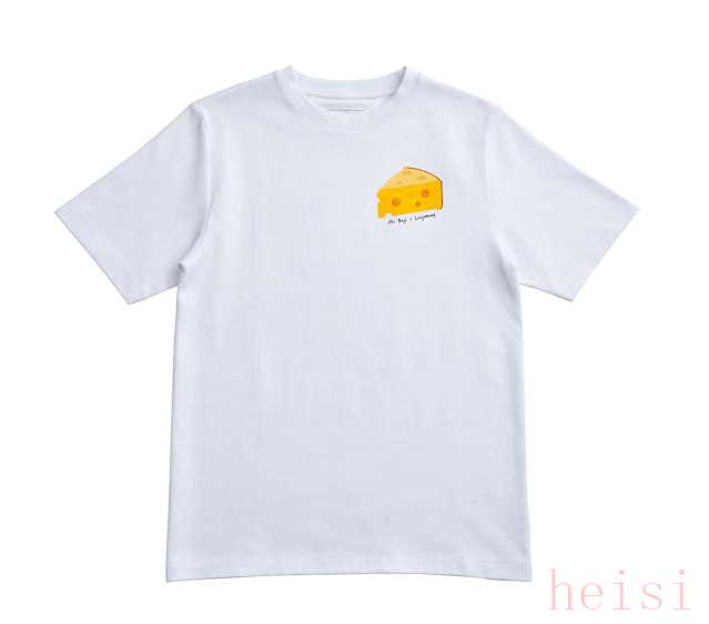 此外,这次的联名产品还有T恤系列,明亮的“黄色芝士”和清新色彩搭配妙趣横生,除了黑白常规款,还有雾霭蓝,闪亮的“吃货”标签让人眼前一亮。