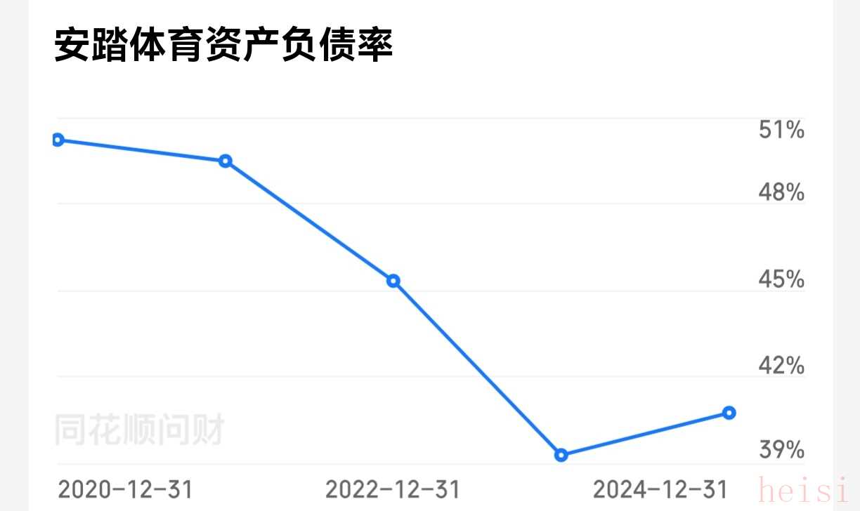 第四个,资产负债率。连续五年分别为50.21%、59.48%、45.32%、39.27%、40.74%。不算太高,且小幅度下降,还可以。