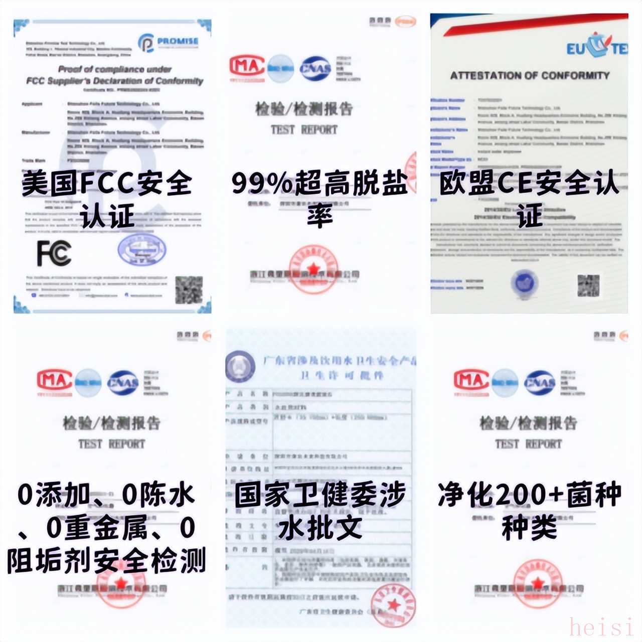 1. 六级复合过滤系统包括PP棉(5μm)、烧结活性炭、除氯、PP棉(1μm)、RO膜(0.0001μm)、后置碳棒和改善口感无双酚A水路,能高效去除铅、镉等重金属。