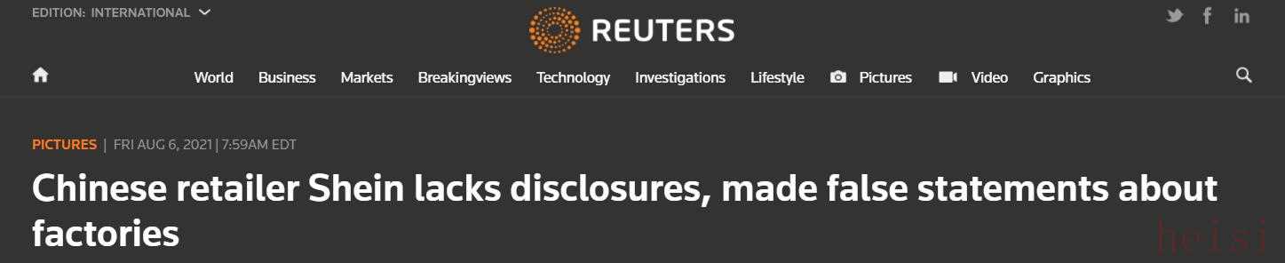 英国路透社在8月的一篇报道中称,虽然Shein宣称自己从未参与雇用童工或强制劳动,但该公司并未依照英国法律规定提供完整的供应链信息。报道同时称,Shein的低价路线以及信息披露不透明度,已引起一些劳工权益团体关注,质疑Shein如何低成本生产商品。