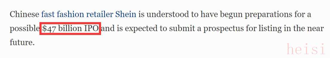 面对市场传言,Shein有些含糊其辞,仅表示有关该公司的报道“往往并不准确”,还称该公司去年的估值为“数十亿美元”。今年5月底,Shein的一位女发言人透露,该公司短期内没有IPO计划。