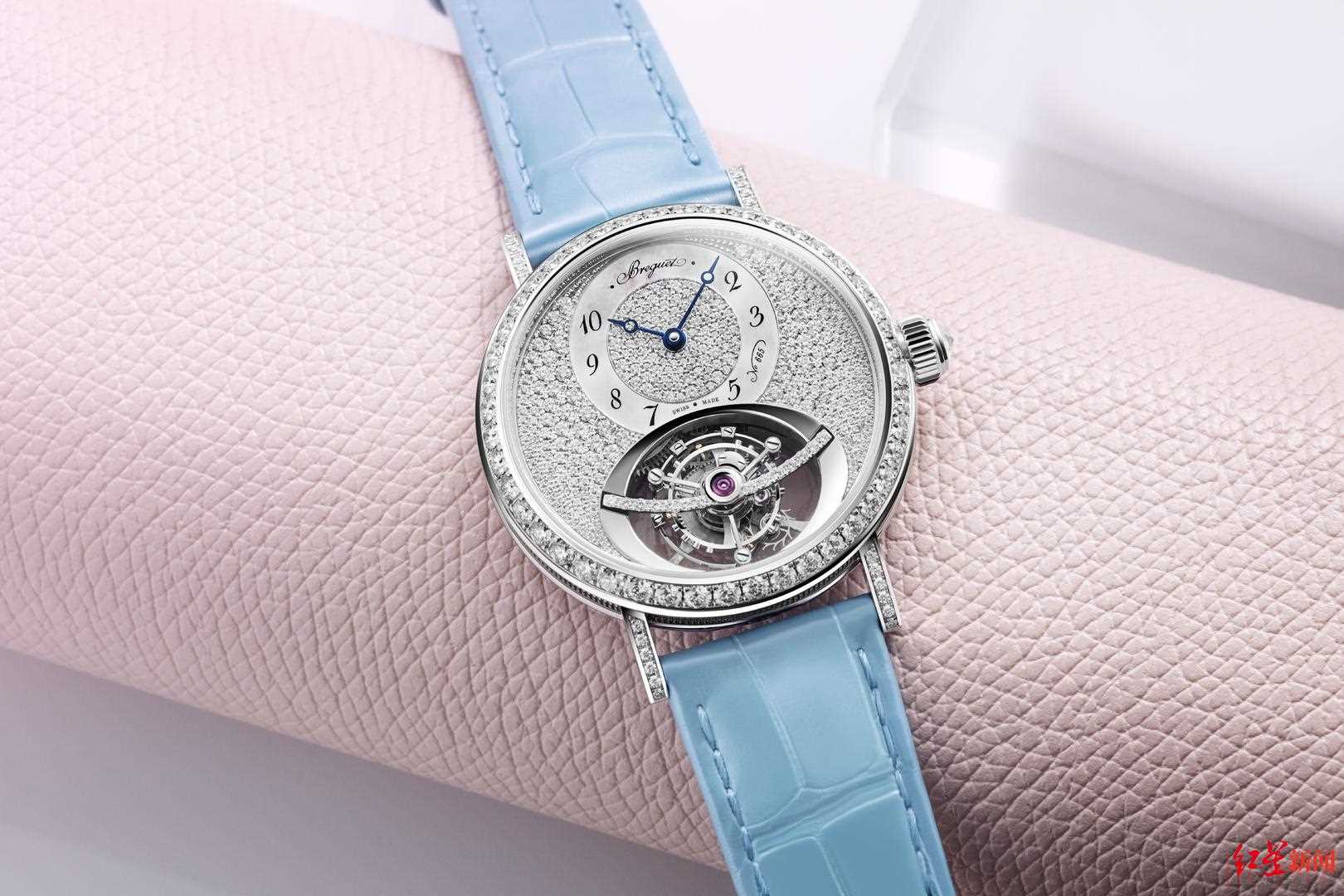 宝玑Classique经典系列3358陀飞轮腕表上,雪花镶嵌的设计灵感与机械美学巧妙融合。281颗明亮式切割钻石排布于35毫米18K金质偏心表盘上,从6点钟位置的椭圆形陀飞轮视窗呈弧形向上延伸,并汇聚于12点钟位置的白色珍珠母贝刻度圈上。