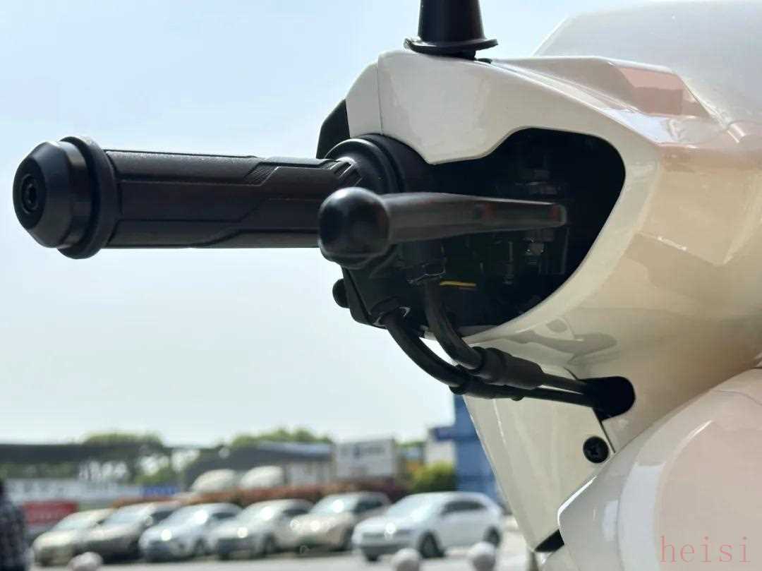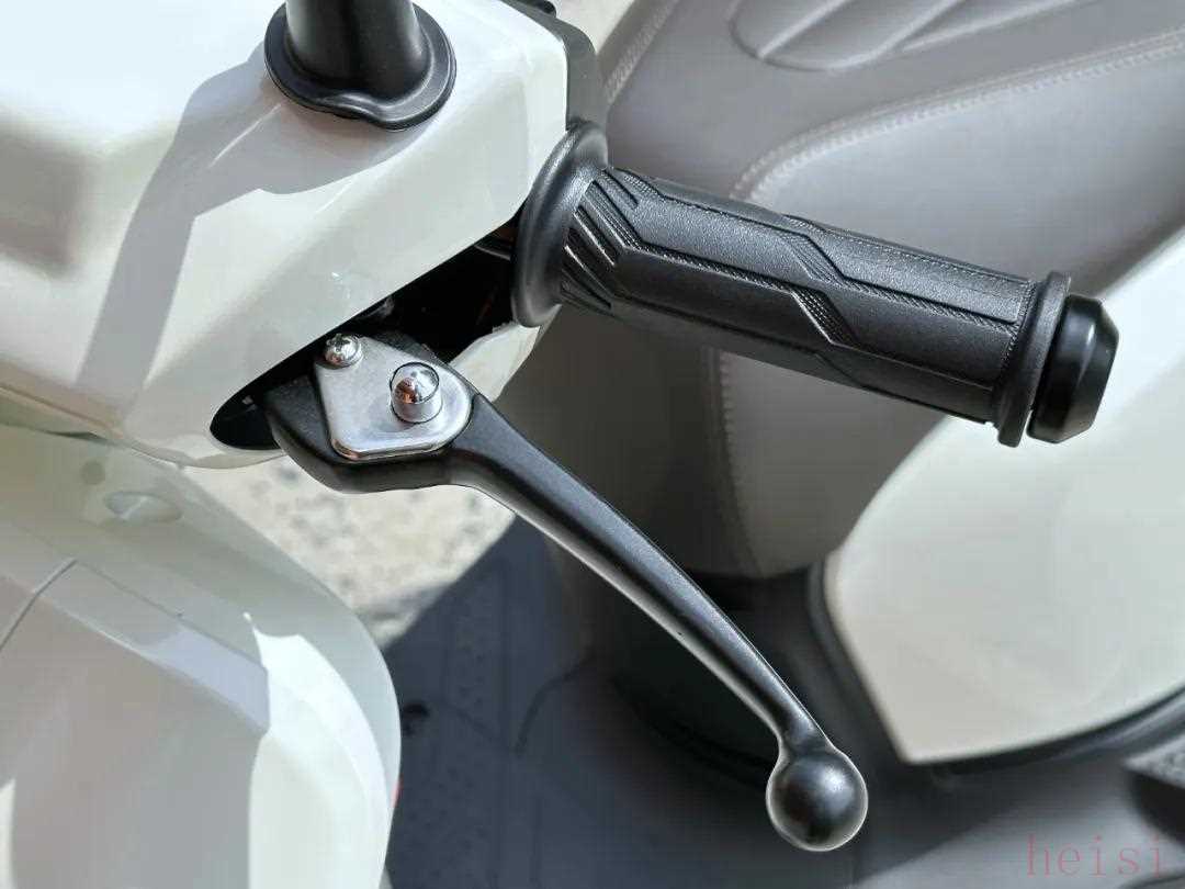 另外,菲梦125还配备有驻车制动,也就是手刹,在后刹车拉杆上有一个按钮机构,捏住刹车按下即可完成驻车制动,方便坡道停车。而且菲梦125还采用了双拉线的油门,边撑熄火功能,要知道这可是125踏板,这两个小的功能可谓是相当厚道了。菲梦125的细节优势