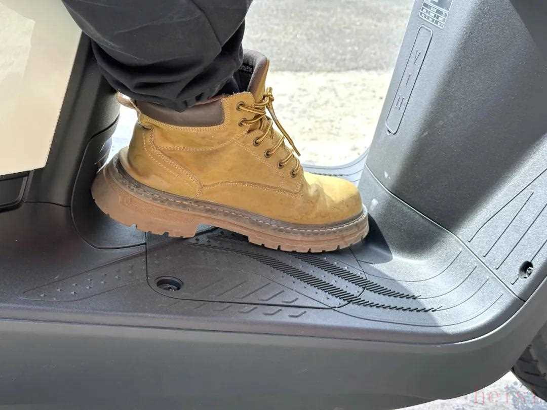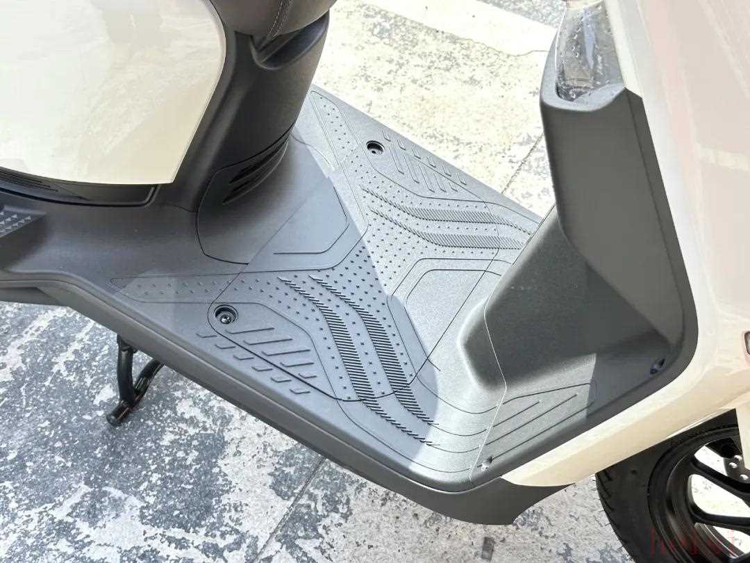 作为一台平踏板车型,踏板的空间自然也备受关注,菲梦125的平踏板最窄之处基本能够放下43码的鞋(44码马丁靴),而且更令人意外的是,这台车竟然还有斜脚踏的设计,骑行舒适度更高。菲梦125性能优势