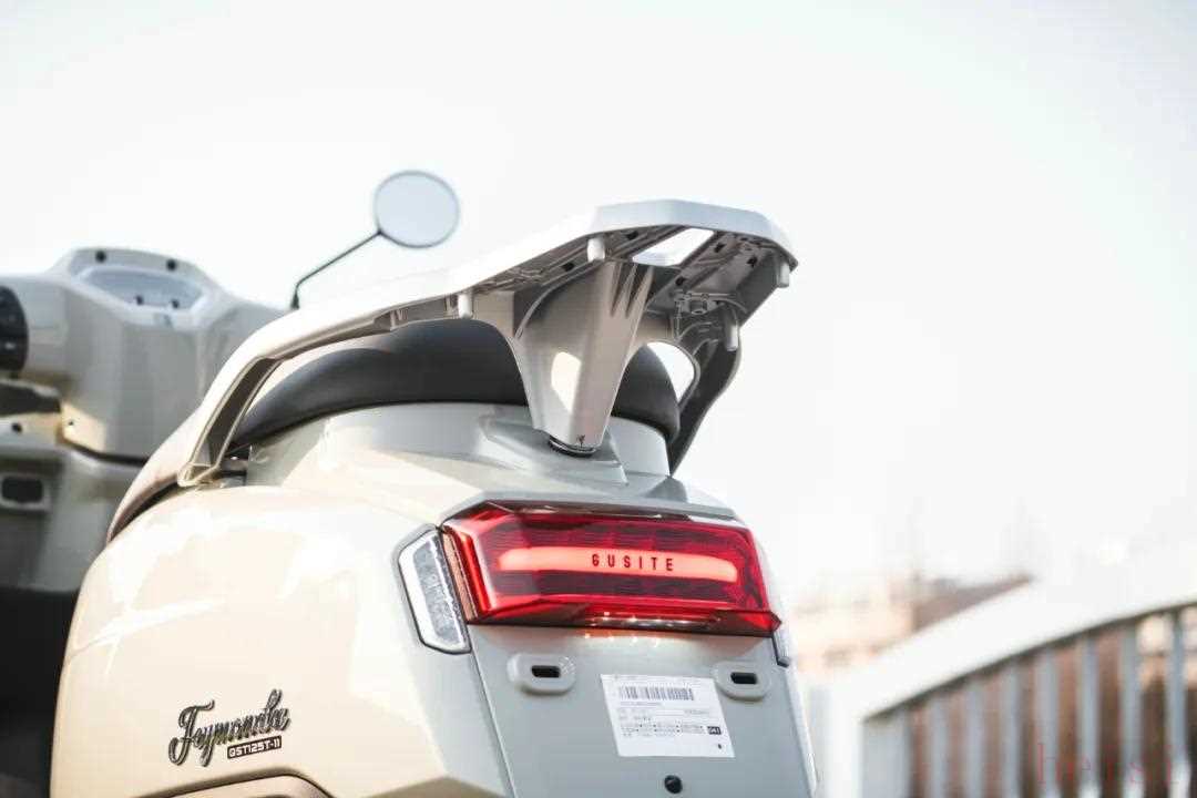 古思特菲梦125全系标配LED光源,包括头灯、尾灯以及转向灯,不仅提升了夜间行车的安全性与辨识度。而且车灯的设计和做工用料都非常的考究,没有选择市面上的通用车灯模组,原创的设计车灯在这个价位当中舒适不多见,能够在设计、做工、细节上都做出精致感的同样少见。