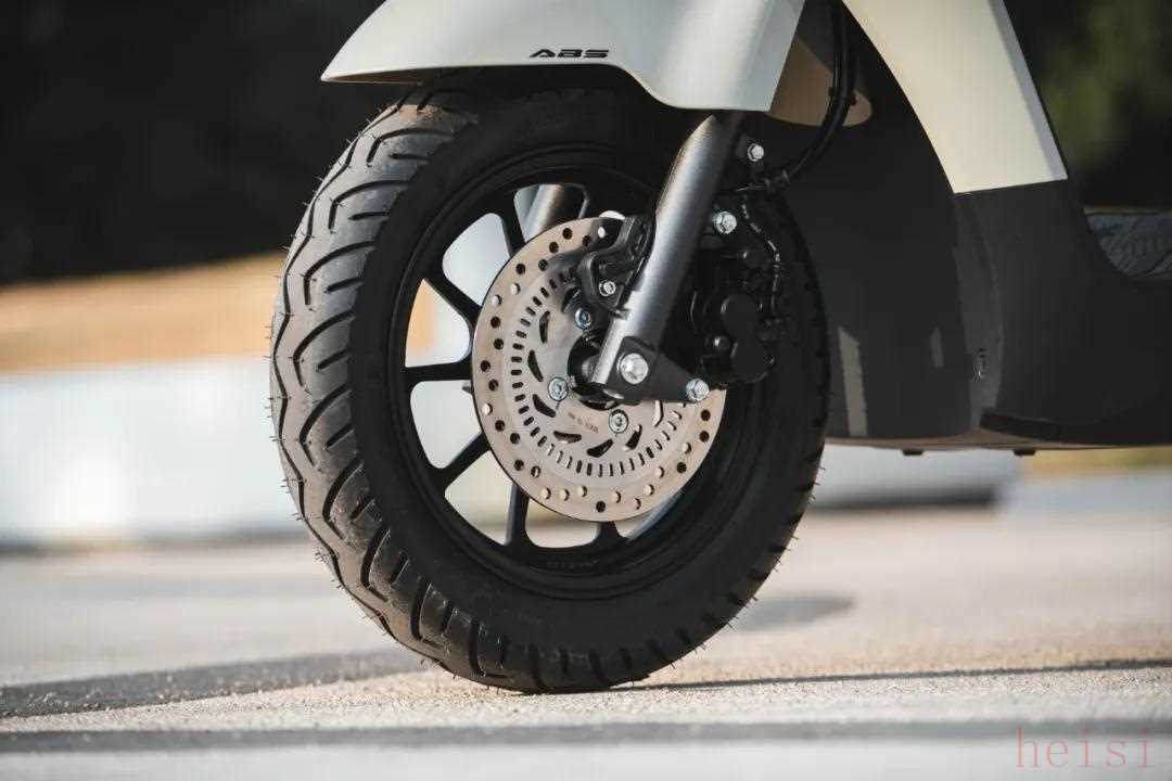 制动系统部分,菲梦125有两个版本CBS/ABS,前220mm单碟搭配双活塞刹车卡钳,后刹车采用传统鼓刹设计,考虑到这个价格,这台车的刹车规格已经非常高了,要知道不少万元级的合资品牌125踏板,给到的也是这一套规格,对于这个级别的小踏板来说基本完全够用了。