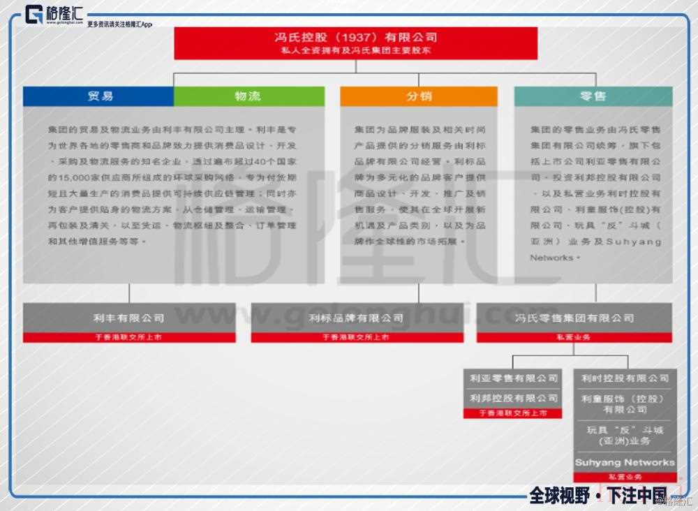香港的产业主要有三个,金融、地产还有贸易。四大家族以地产起家,而冯氏家族100多年来一直做的是贸易。截至2017年底,在香港有四家上市企业,分别是利丰、利邦、利标品牌还有利亚零售,利丰是最大的家族产业,在40多个国家或者地区经营庞大的全球供应链网络。