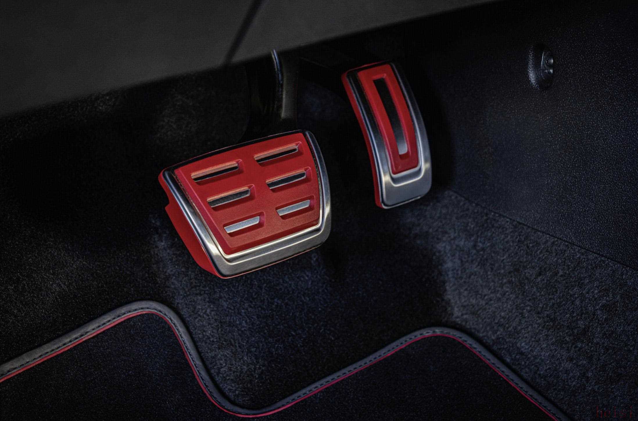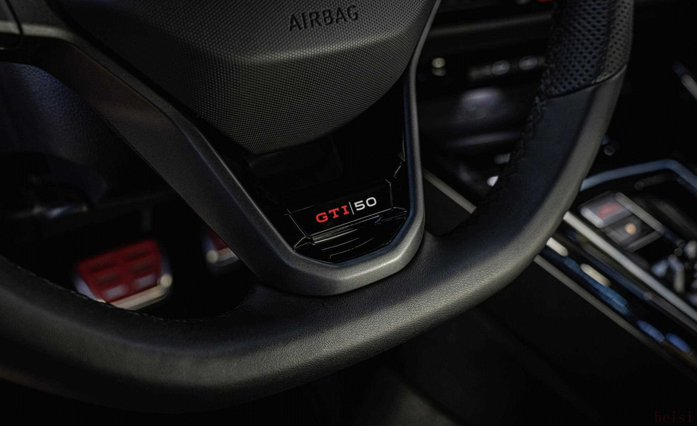 内饰部分,高尔夫GTI 50周年纪念版装备有红色安全带、带GTI标识的运动座椅以及红色脚踏板,并在方向盘以及迎宾踏板位置加入50周年纪念版标识。