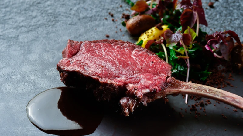 餐会的高潮是九州鹿儿岛黑毛和牛的破例登场,这一次Li.nu暂时让出的位置,让白水主厨以法式技法演绎和牛细緻油脂的变化,而李祈睿则以台湾云吞作为对话语彙,灵感取自红油抄手的辛香记忆,将香气凝缩于一口云吞中,搭配特製和牛辣油,形成台日法三重奏的味觉共鸣。这道料理象徵九州风土与台湾技艺的交会,也是两位主厨让风土说话理念的具象化呈现。