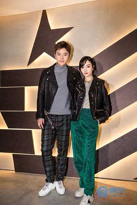前几天李小璐参加某品牌新品发布活动时的闪闪的绿色裤子也十分抢眼,上面搭配机车皮衣,是在和老公比帅?