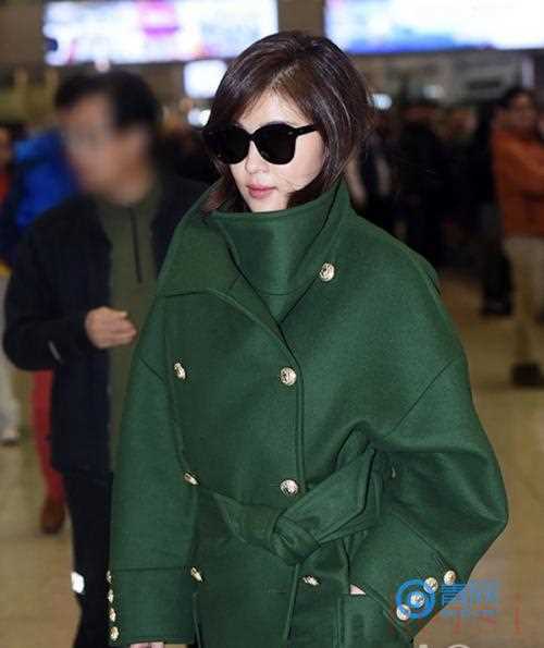 河智苑12月2日身着Balmain绿色束腰大衣现身韩国机场,绿色的呢子大衣上金属扣的点缀显得具有英伦风情。