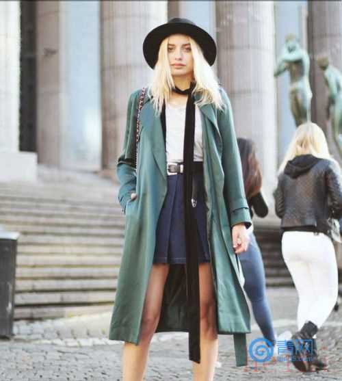 风衣款式也很拉风,Sonya Esman的绿色风衣来自River Island,内搭白色T恤和A字短裙,十分的减龄又俏皮。