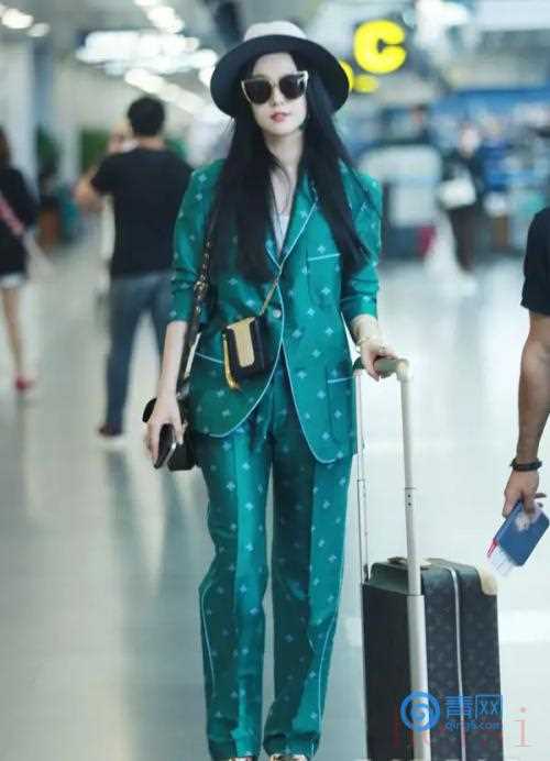冰冰今年9月出发去41届多伦多电影节的一套Gucci男士绿色真丝睡衣套装也是十分吸睛,有种慵懒的妩媚。