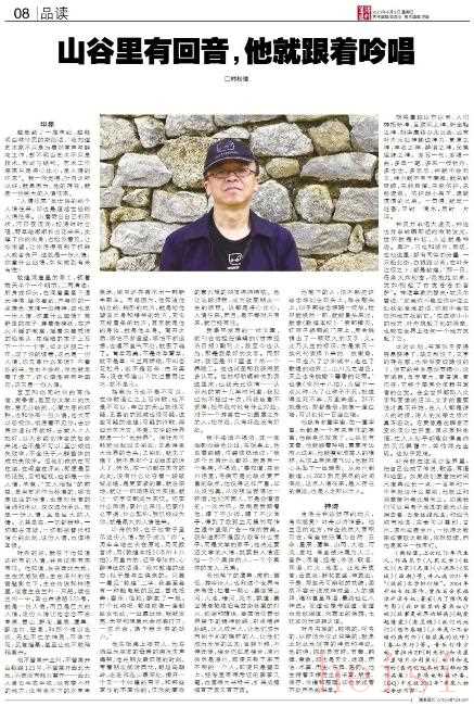 这段文字以一个极其生动且富有诗意的比喻开篇:“山谷里有回音,他就跟着吟唱”。这句话精准地捕捉到了韩松落创作和其本人的核心特质。