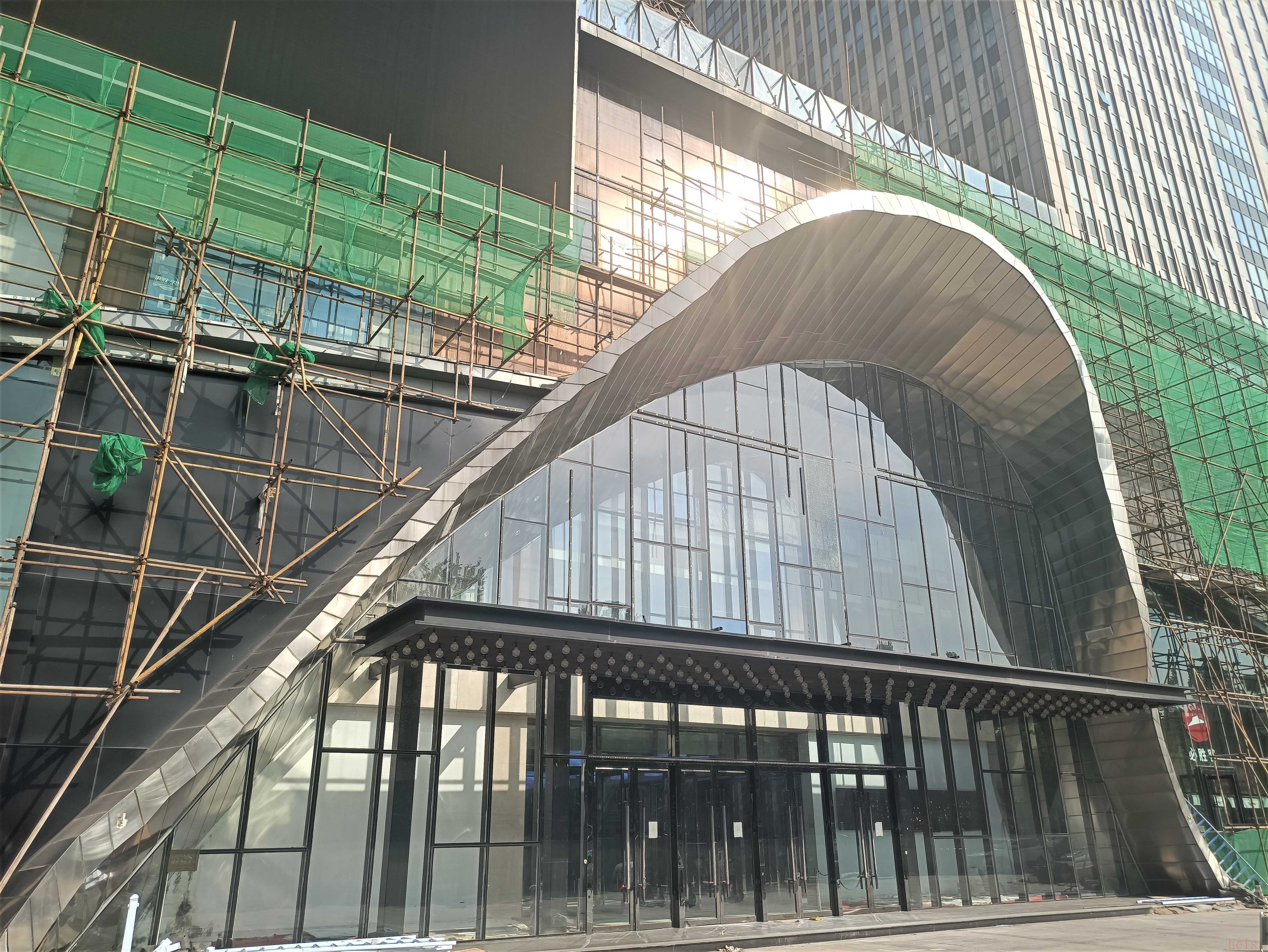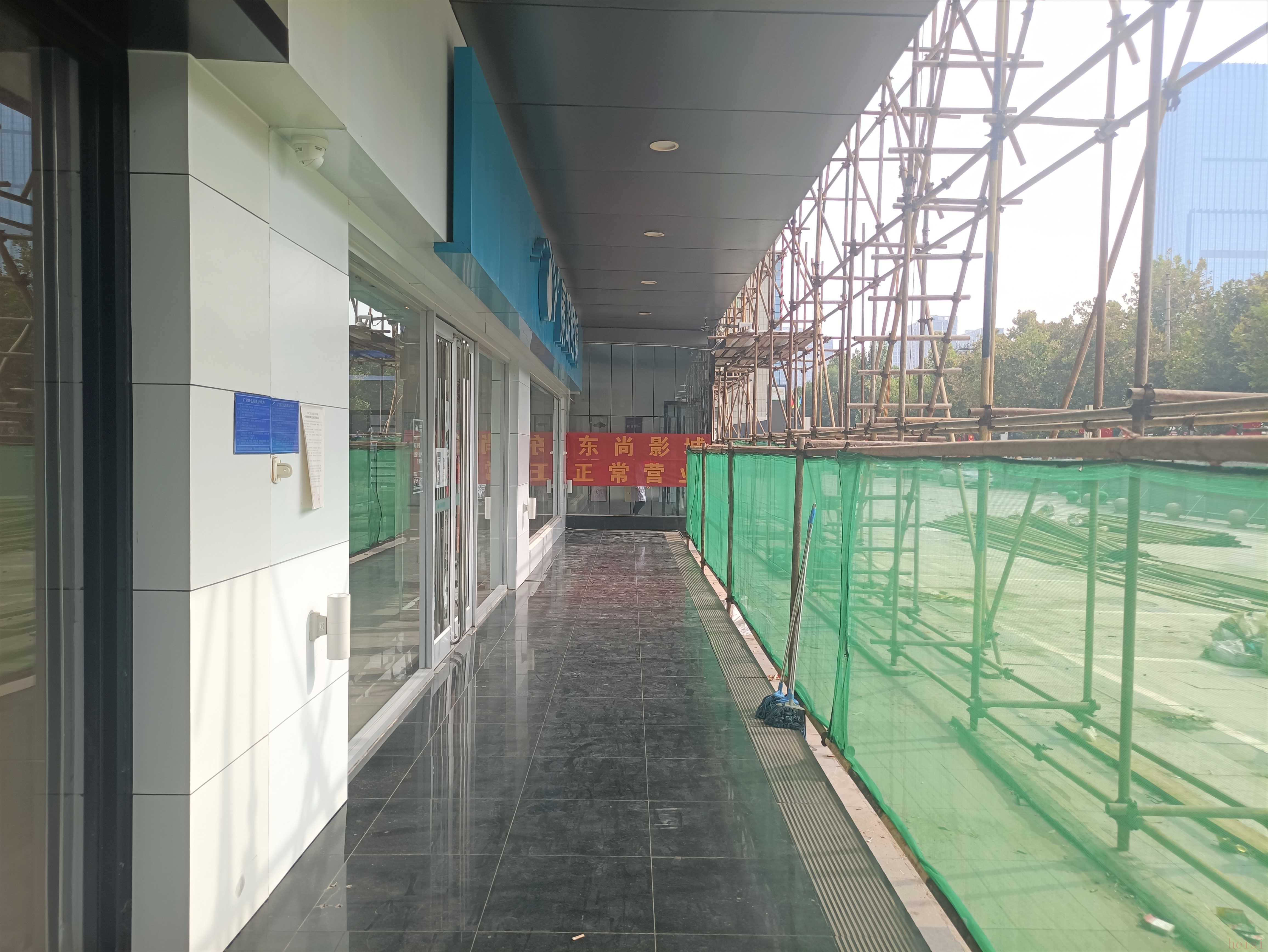 10月12日上午10时,燕赵都市报纵览新闻记者来到这家商场前,绿色围挡几乎完全遮挡了视野,唯有站在稍远处的非机动车道旁,才能隐约看到商场大门。这个面向中山路的五层高楼外立面已经被巨大绿幕包裹了大半,工人师傅们正井然有序地施工作业。
