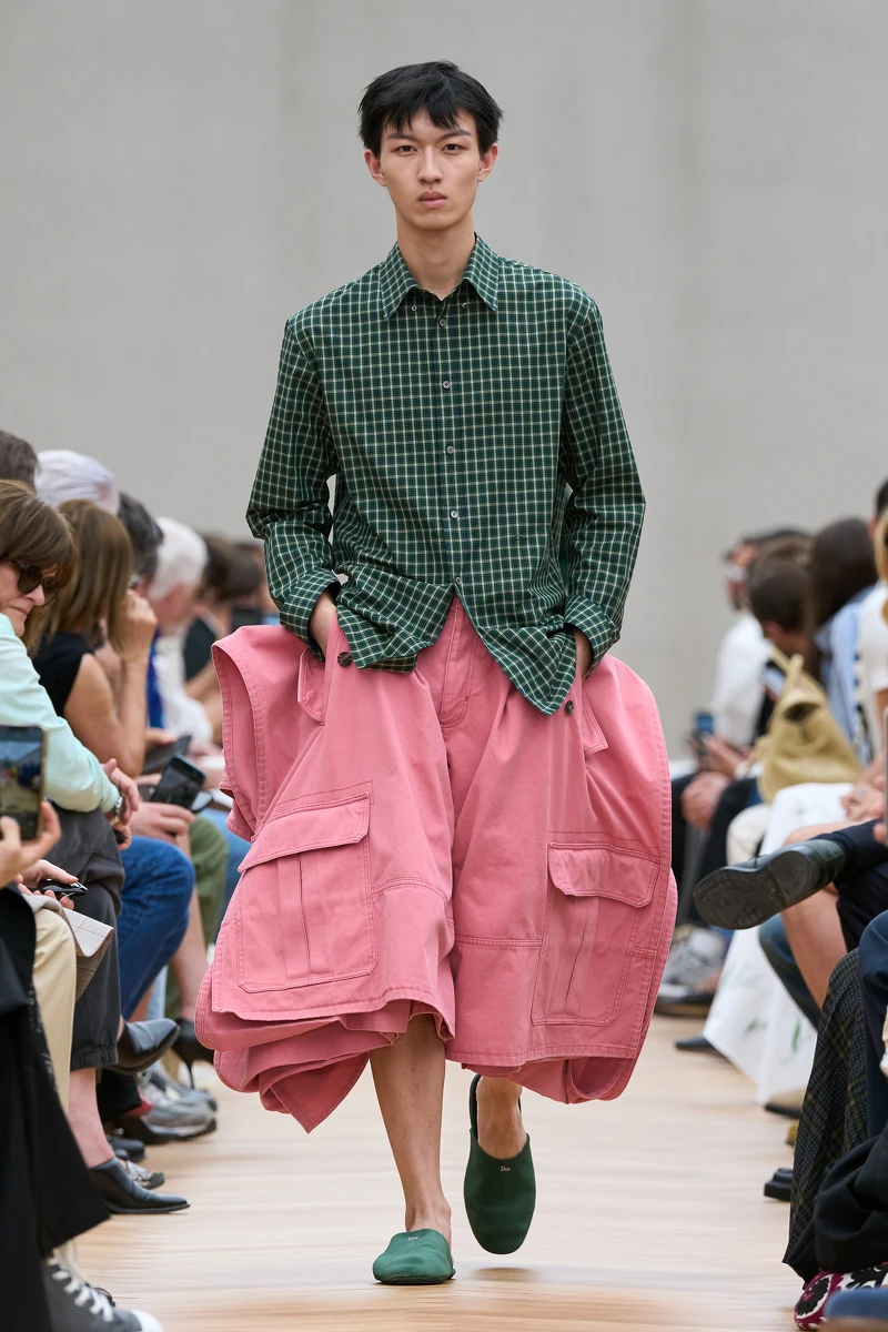 儘管Dior以女装起家,然而当年从男装开始时装事业的Jonathan,选择以男装大秀开始他的Dior时代,而他也让世人看见惊奇的设计脉络――他将Bar Jacket、1948 Delft礼服、1952 La Cigale礼服、1948 Caprice等Dior先生的高订经典作品,全数以他擅长的奇趣手法转化成男装轮廓。为了让系列呈现跨越时空的广度,Jonathan借鉴Dior先生迷恋的18至19世纪并从中抽取男装元素,让男装首秀呈现看似承接Dior先生原点,实则充满Jonathan个人创见,以此向时装屋的高订剪裁致敬的同时,也将他经过精密计算的随性不羁发挥极致,人们也才第一次知道原来高级订製服也可以成为男装的创作来源。