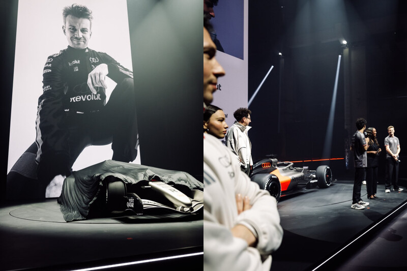 Audi 在1999年投入利曼原型赛车(Le Mans Prototype,缩写为LMP)后,持续对赛车採用以为名的作为赛车型号,使车厂首辆F1赛车便以为名。日前 Audi Revolut F1 Team 在德国柏林的 Kraftwerk 活动现场首次公开亮相,开场就被酷炫灯光秀疯狂震撼。再加上优雅女声乐、当代交响乐团及流行饶舌歌手,满满时尚感与亮点,根本是奥运开幕式等级。