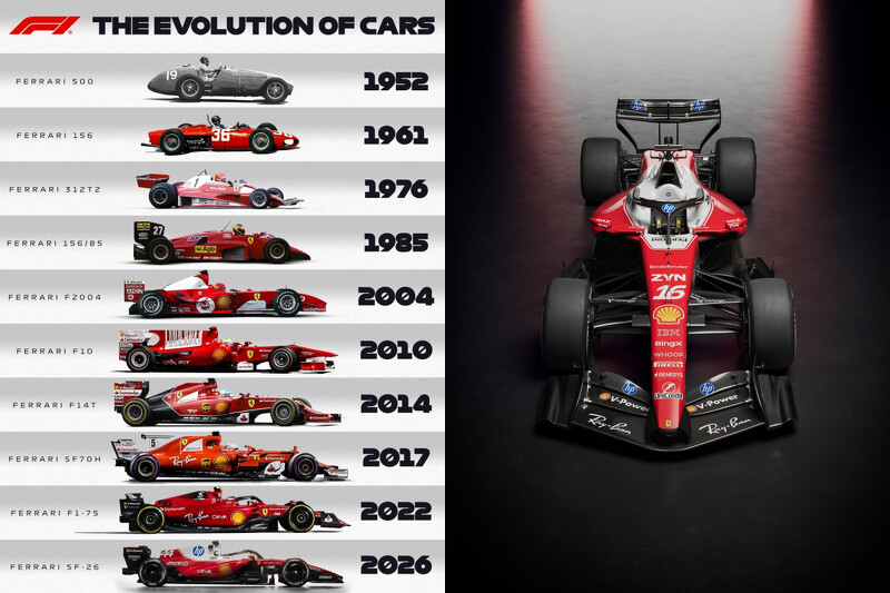 新车亮点: 众所期待的名门红军,2026 年新车命名为 ,新战车外观涂装以经典为基础,相较去年深红,今年似乎是为一洗2025赛季的种种不顺和内耗,而提高红色亮度,更加鲜豔吸睛,同时在驾驶舱週围加入更多白色元素,不再一红到底,为了因应新规则,侧箱设计变得更为纤细,整体像一道耀眼光芒的红色闪电。