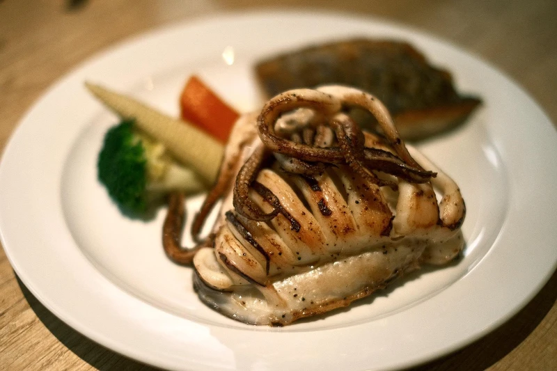 如果你不吃牛肉或是想要换换口味,与也是非常不错的选择。鸡腿排外皮酥脆、肉质多汁;鸭胸经舒肥与香煎后切面粉嫩,搭配红酒醋酱清爽收尾。这里也提供鸡猪、牛鸡、牛鸭等双拼主餐,一次满足多种口味。