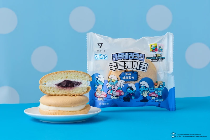 上面的蓝色小精灵是由队长Woozi率领的VOCAL TEAM,包含净汉、Joshua、DK、胜宽这四位成员。戚风蛋糕体轻盈鬆软、入口即化,内馅蓝莓果酱酸甜适中、层次丰富。