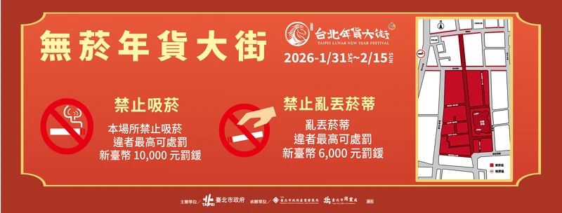 延续2025年推出全台第一条,今年禁菸範围再扩大至周边巷弄,也为国际观光客推出支援中、英、日三种语系的LINE数位导航服务,让大小朋友、外国游客都能无忧走春、吃年货。今年也与momo购物网合作、打造24小时不打烊,连续16天结合百家特店推出独家优惠,让办年货突破时间与地利位置限制。