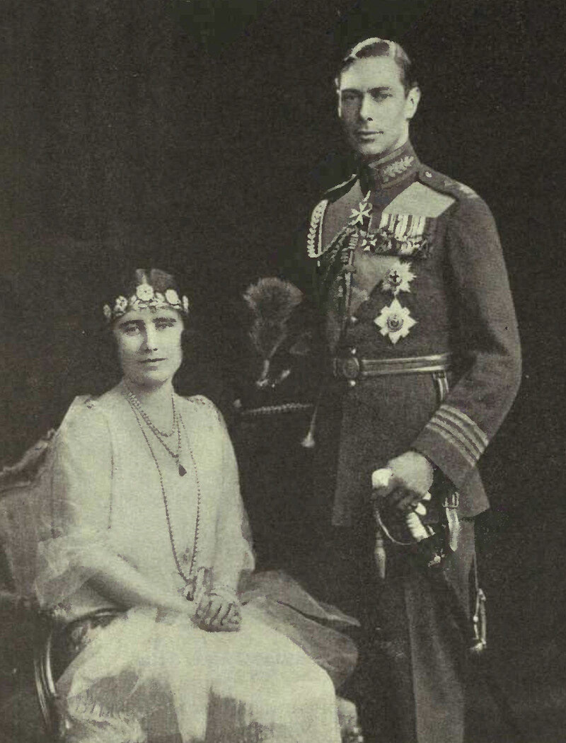 伊莉莎白王太后(Queen Mother)配戴Strathmore Rose 冠冕,与丈夫乔治六世国王合影,图片来源Wikipedia