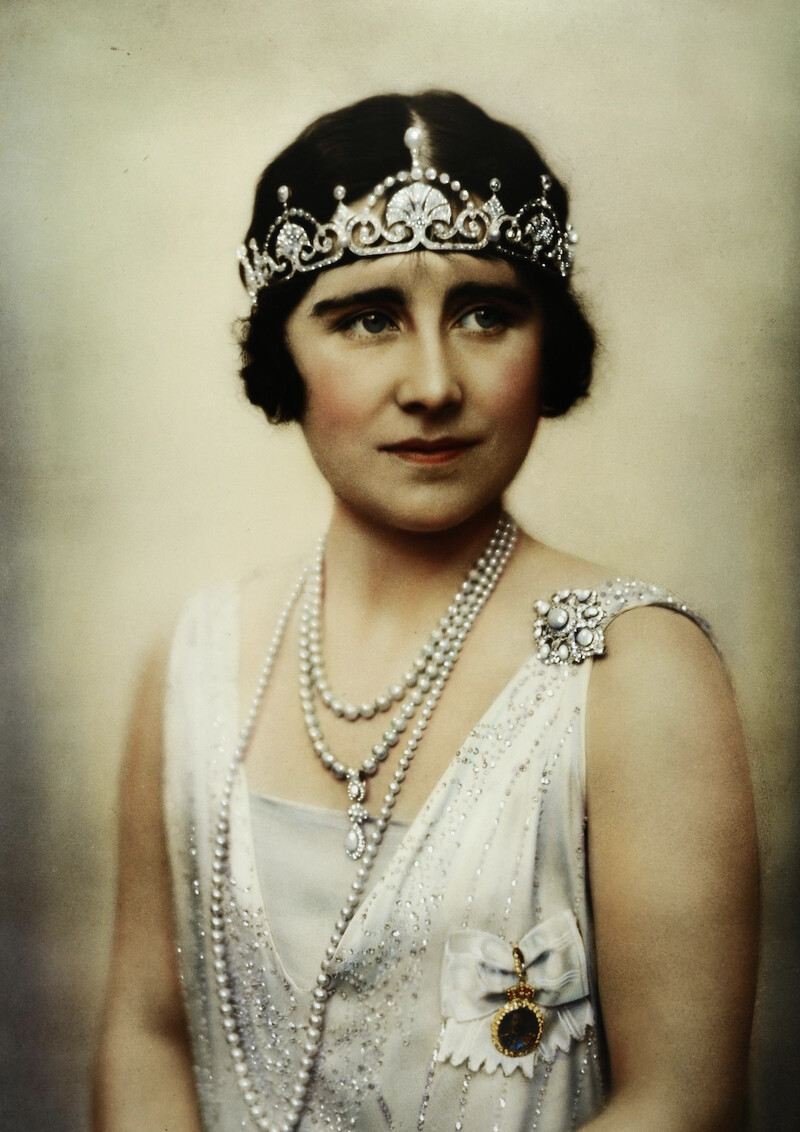 伊莉莎白王太后(Queen Mother)与莲花冠冕( Lotus Flower Tiara),图片来源Wikipedia