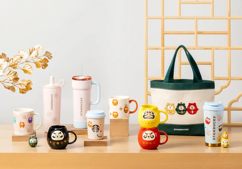 星巴克春季全新上市达摩开运系列,以日本传统吉祥物达摩为设计灵感,结合品牌灵魂人物,打造一系列兼具可爱外型与吉祥寓意的杯款与生活小物。
