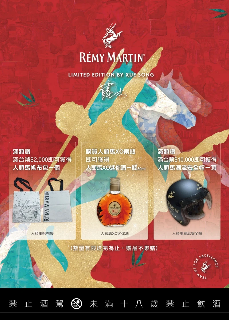 指定酒专限定: 凡购买满NT2,000 ,即可获得人头马帆布包一个。 凡购买满NT10,000 ,即可获得人头马潮流安全帽一个。 凡购买2瓶人头马XO,即可获得同款迷你酒(50ML) 一,赠品数量有限送完为止。