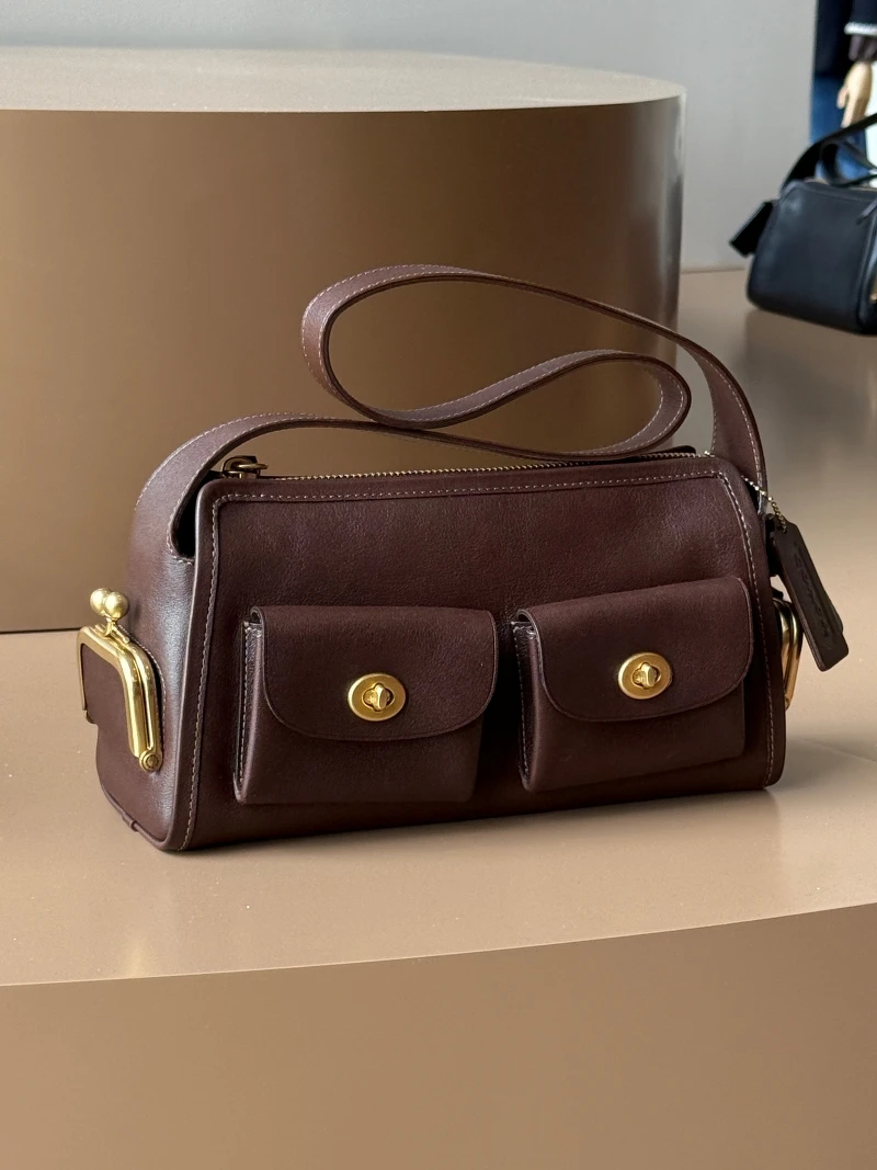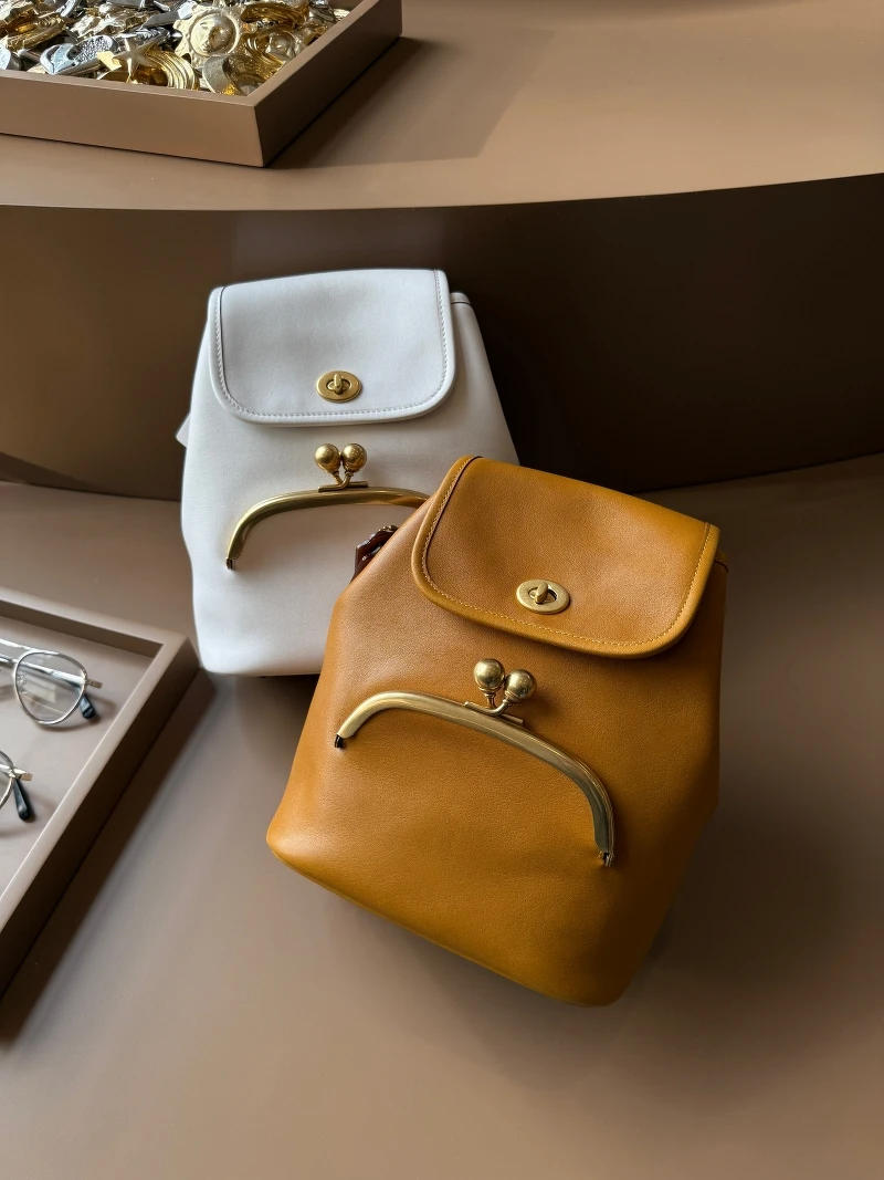 在Brooklyn、Carryall、Kisslock的陆续窜红之下,手袋作为Coach近年表现非常亮眼的部分,在本季推出不少新鲜单品,其中比例变为修长的全新Kisslock Frame东西包更是其中的焦点之作,这款包作为单肩背的设计,在秀上模特儿以手抓包的方式呈现,推出杏色、枫树棕与格纹羊毛等多种版本抢佔爆款C位,经典的Turnlock Haversack包型轮廓则略为加深,并搭配转扣口袋与锁扣夹袋,还有小型的Kisslock后背包,以及两种尺寸的Turnlock邮差包。