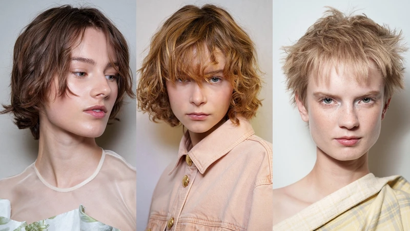 短髮回归成为视觉主体。Aje、Erdem 与 Esber 秀上 Models 的髮长多落在下颚至耳下之间,剪裁乾净,却不追求俐落定型,髮尾刻意保留不齐整的层次与自然翻翘。整理上避免过度吹整或造型品堆叠,仅强调髮丝本身的方向感与重量分布,让短髮随着模特步伐自然晃动。搭配几近原生的肤况与低调彩妆,这类贴近日常的造型,更凸显剪裁与比例的重要性,使脸部气质自然成为视觉焦点。