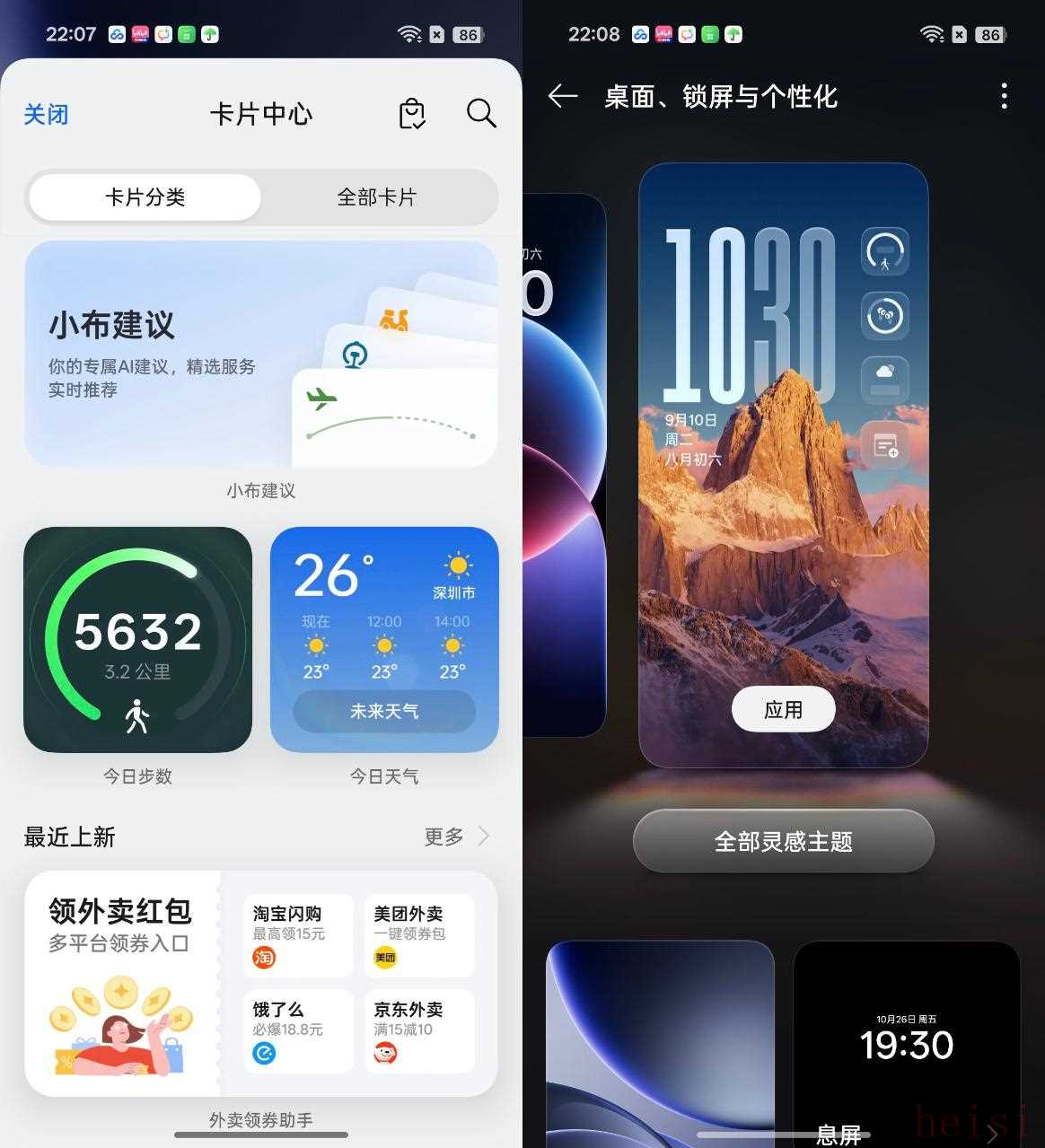 并且,系统的自定义功能积极丰富,包括图标、卡片、文件夹都可以自定义变形和拖动以及设计风格,锁屏界面也新增了实况动态景深以及多种锁屏组件,你的桌面完全可以由你掌控。