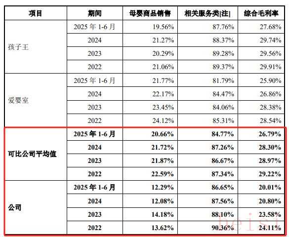 对此,孕婴世界解释称,报告期内,公司的综合毛利率低于同行业可比公司综合毛利率,主要来自于母婴商品销售业务的差异。公司的母婴商品销售业务毛利率低于同行业可比公司,主要受双方经营模式及所处产业链位置不同影响。
