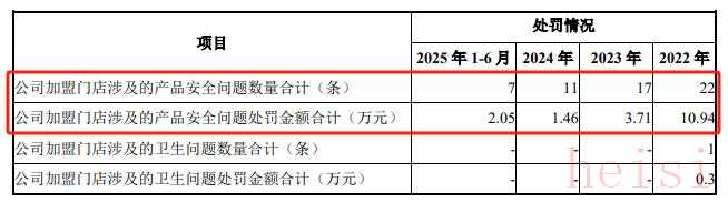 问询回复显示,报告期各期及2025年上半年,孕婴世界加盟门店涉及的产品安全问题数量分别为22条、17条、11条、7条,三年半合计57条,合计罚超18万元。值得一提的是,今年上半年被处罚金额已超去年全年。