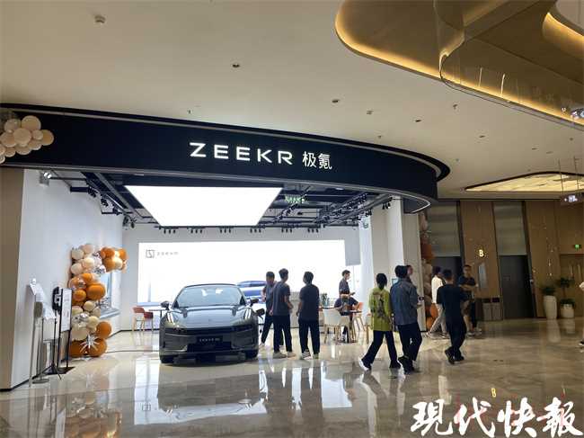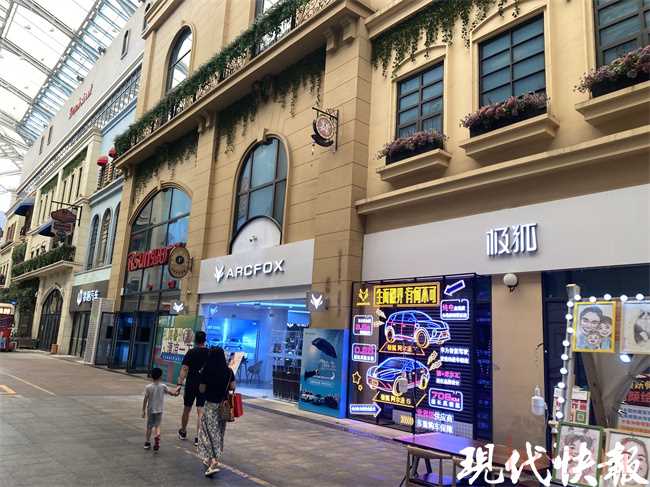 新开不久的江北新区虹悦城,则进驻了蔚来、理想、极氪等多个汽车品牌,几乎每隔三到四家店就能看到一个汽车体验店。