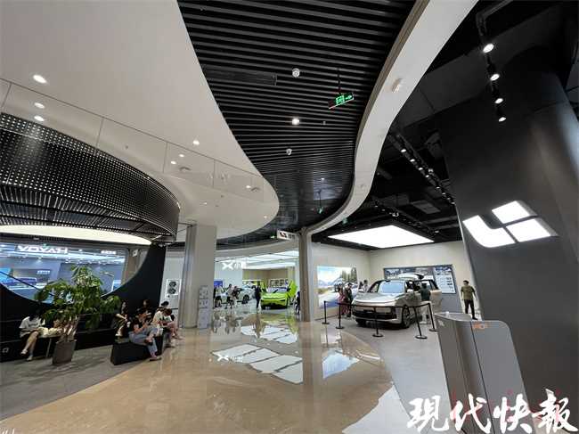 8月7日,现代快报记者来到南京江北新区大桥北路的弘阳广场。这里是江北新区一处大型商业综合体,占地约55万平米。据统计,商场内部有包括零跑、小鹏、特斯拉、极狐、哪吒等5个新能源汽车品牌的体验店和2个汽车品牌的展位。它们的店址全部集中在商场1楼人流量较大的黄金地段,如餐饮区、商场入口处,有两家汽车品牌店甚至是“邻居”,相隔仅10米。这些体验店面积最大的约600平米,最小的约100平米。