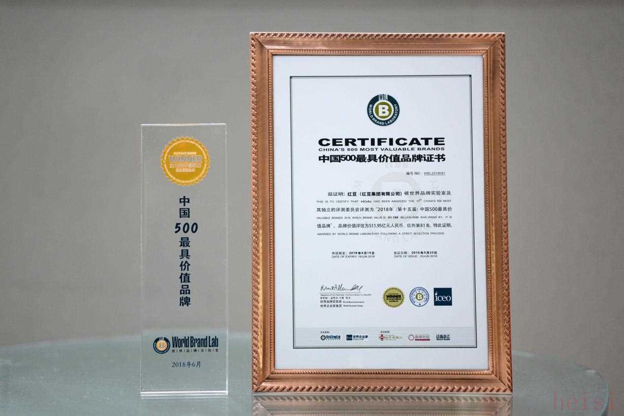 6月20日,世界品牌实验室(World Brand Lab)主办的第十五届“世界品牌大会”在北京举行,2018《中国500最具价值品牌》重磅揭晓,在这份基于财务数据、品牌强度和消费者行为分析的年度报告中,红豆集团“红豆”品牌价值较去年增幅高达130多亿,以511.95亿的品牌价值,位居该榜单第81位。