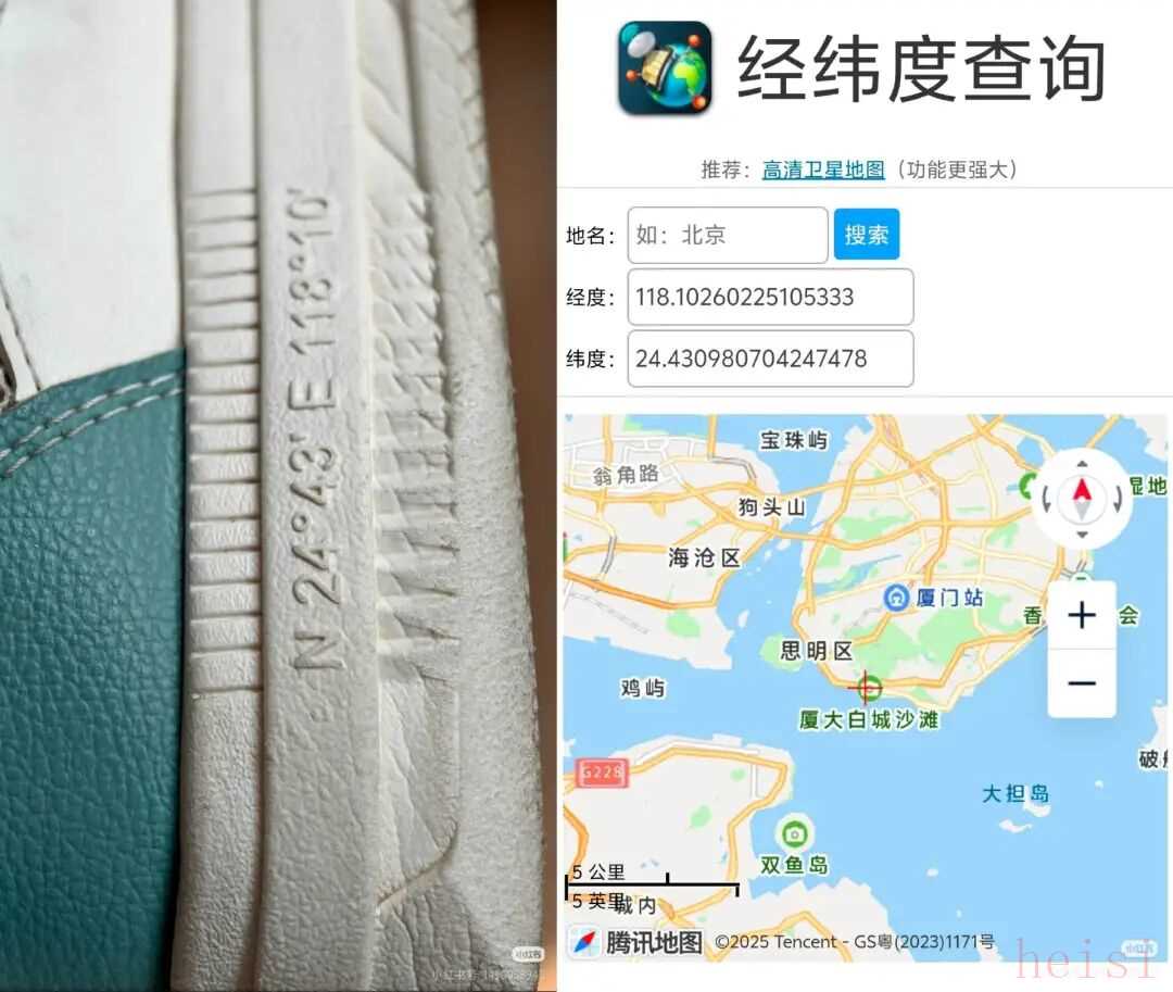鞋帮上刻有经纬度的耐克TC7900 | 图源:淘宝