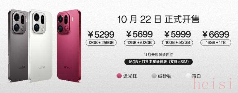 价格方面,OPPO Find X9 标准版 12GB+256GB 售价 4399 元;12GB+512GB 售价 4999 元;16GB+256GB 售价 4699 元;16GB+512GB 售价 5299 元;16GB+1TB 售价 5799 元。