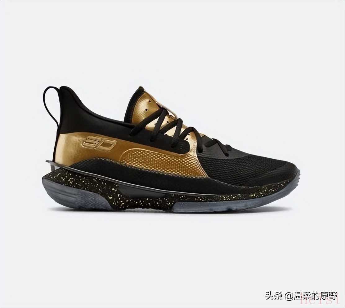 Under Armour 安德玛UA 库里Curry 7 低帮男子运动篮球鞋库里7代3023300-002黑金UA HOVR科技有助于加快能量回馈,为双足提供所需助力。Micro G缓冲设计有助于增强启动突破与提速切入时的爆发力。由合成革、网眼布与TPU嵌片组成的透明复层有助于强化足面特定部位的贴合度,帮助带来舒适、稳定而灵活的穿着体验。鞋筒与鞋跟处的发泡材料衬垫有助于提升双足舒适度。鞋筒后部的内衬有助于双足轻松穿入,贴合紧固。柔韧的足底支撑板有助于为脚部移动提供良好的防护。分离式鞋跟有利于减少对运动流畅性的干扰,从而降低双足受伤风险。橡胶外底采用人字纹设计,有助强化抓地力,从而帮助改善灵活度。适合篮球等运动。