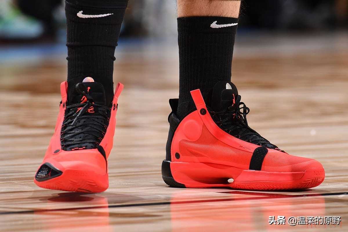 NikeAir Jordan 34 篮球鞋这款名为"红外线"的运动鞋借鉴了迈克尔乔丹的第一款冠军运动鞋 Nike Air Jordan 6 的调色板。然而,这一次,充满活力的红色作为基础,而鞋带、鞋舌、衬里和前掌稳定器在黑色中脱颖而出。其他亮点包括鞋舌上的 Infrared Jumpman 和 Flight 以及前掌下方的 Visible Zoom Air 缓震窗。