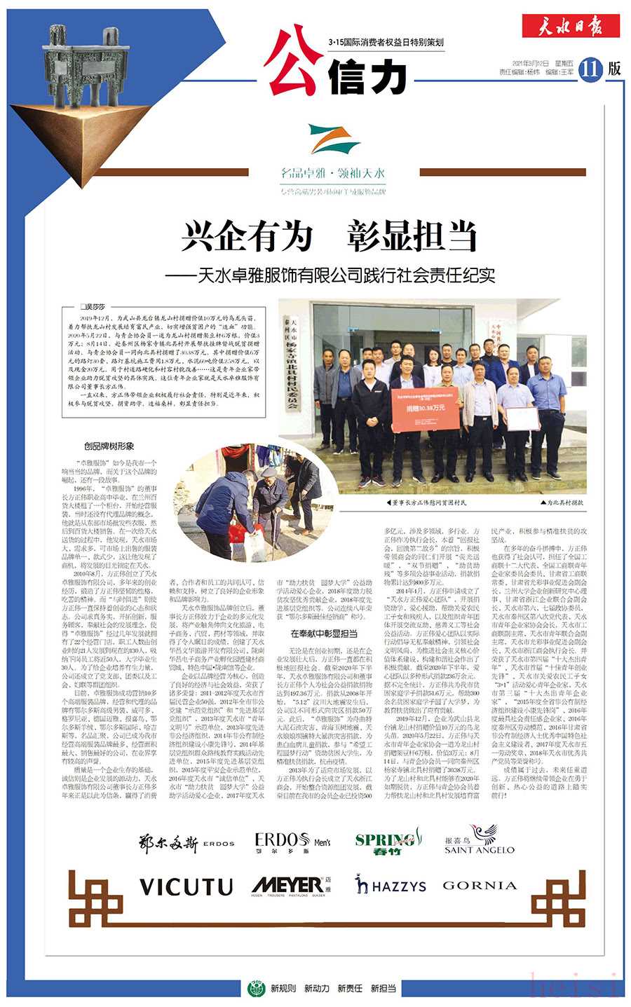 以下是一篇关于天水卓雅服饰有限公司践行社会责任的纪实文章,由于我无法获取该公司最新的具体信息,文章将基于一般性企业社会责任实践,并结合天水及服装行业的背景进行创作。您可以根据实际情况进行修改和补充。