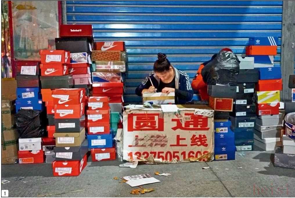 最近几年,随着有关部门对仿冒鞋整治力度加大,鞋商们只能晚上干活白天睡觉。莆田最大的仿鞋交易市场,位于城厢区的安福电商城。在这里,白天大门紧锁,深夜人声鼎沸,车来车往,吆喝声、打包声……鞋商们一件接着一件地打包包裹,快递员们则穿梭在各家店铺,将这些标有各大品牌鞋Logo的仿冒鞋发往全国各地。