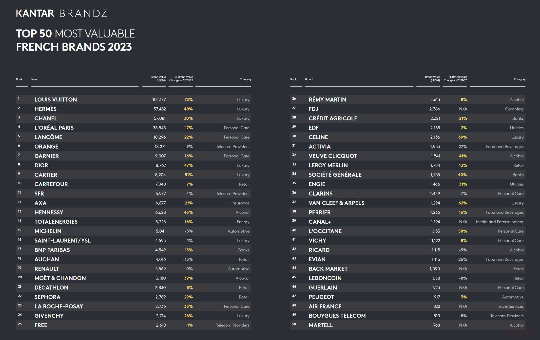 2023 BranZ 评选出的TOP50 法国品牌榜最新揭晓。