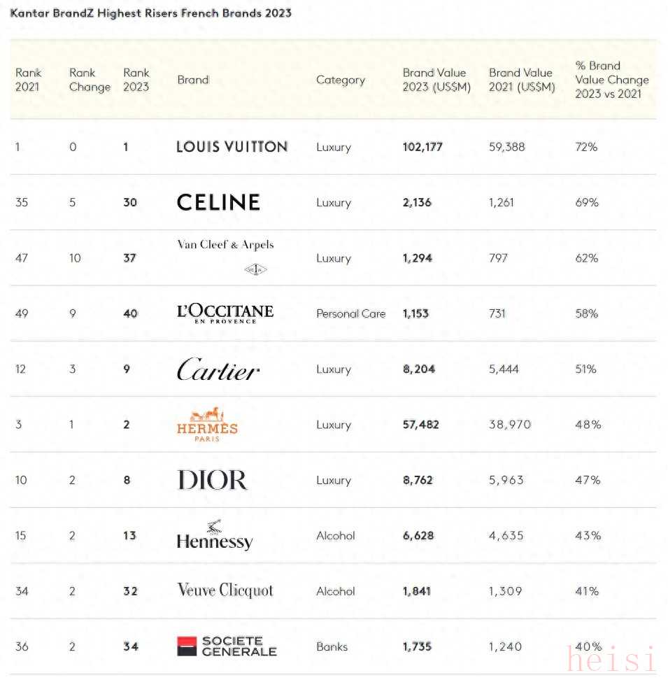 总的来说,2023法国品牌TOP50的揭晓,再次证明了法国奢侈品牌的领先地位,也为全球奢侈市场的发展注入了新的活力。