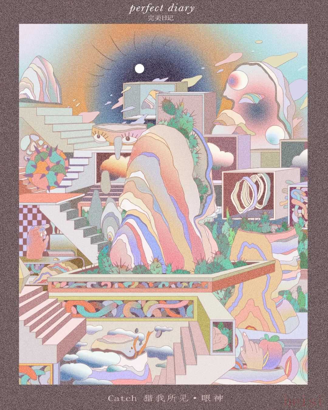2019年完美日记联合白金创意国际大赛,共同推出“Catch:猎我所见”主题作品征集,通过你独特的表达方式来展现对某种独特眼神背后故事的非凡想象。参赛作品表现形式、手法、风格不限,例如插图设计、海报设计、品牌形象设计等。