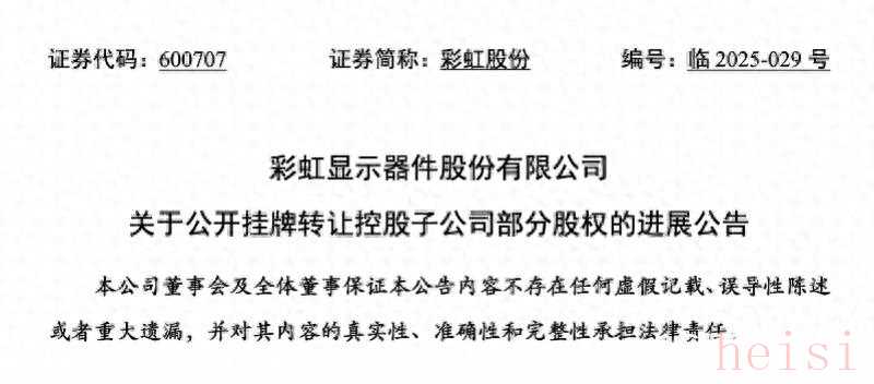 彩虹股份表示,已于2025年4月16日召开第十届董事会第七次会议,审议通过《关于转让公司控股子公司部分股权的议案》,决定以公开挂牌方式转让所持彩虹光电 30% 股权。彩虹股份表示,此举旨在抓住新型显示产业发展机遇,优化主营业务结构,提升业务抗风险能力,满足基板玻璃业务发展战略需求。