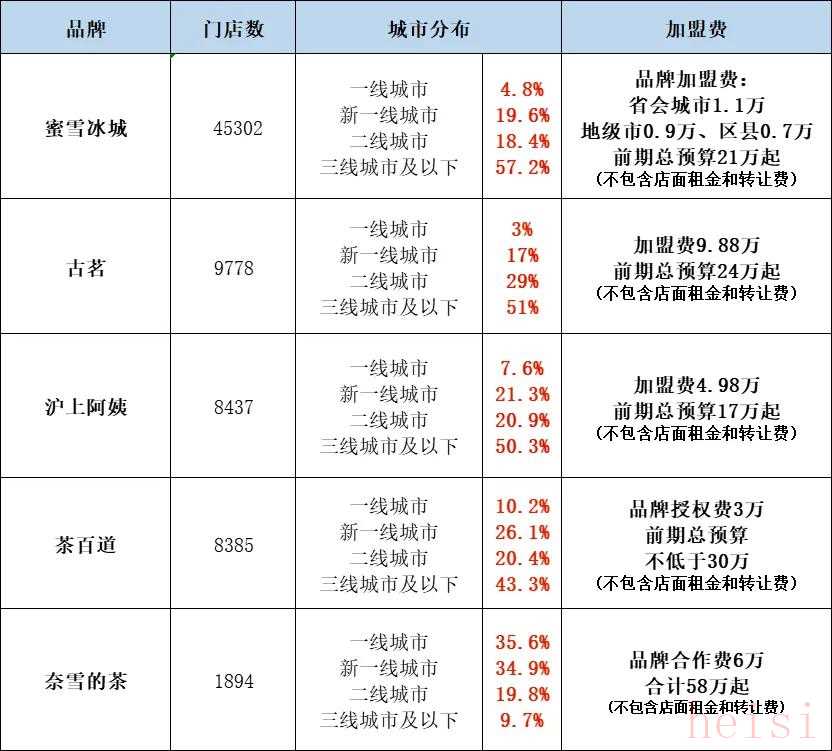 要想加入好的品牌,就必须选择好的地段和位置,地段意味着人流,亦是品牌方需要反复考核的硬性指标,在一些城市,奶茶店月租高达3万-5万元不是鲜有耳闻的事情,有地方还能占到营收30%~50%,从33餐饮网获取的一则某品牌加盟经营成本介绍的数据看: